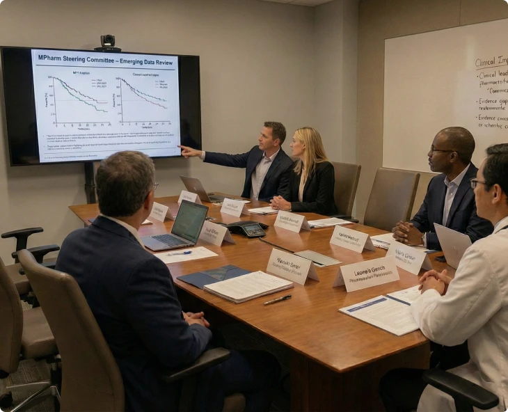 Steering Committees play an essential role in guiding scientific direction, shaping evidence-generation priorities, and ensuring that medical strategies remain aligned with real-world clinical needs. MphaR provides comprehensive support for the design, coordination, and execution of Steering Committee programs—before, during, and after major medical congresses.